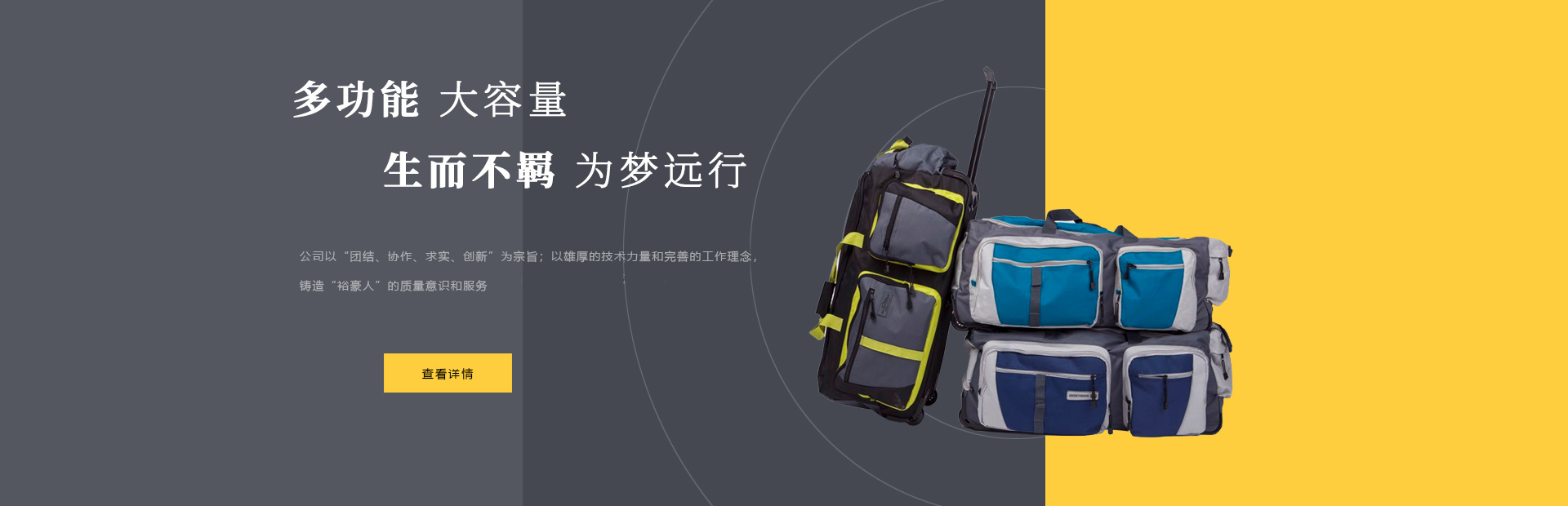 本公司是一家集設計,制造,加工,貿易為一體的專業(yè)箱包生產出口企業(yè)。已有20多年箱包生產經(jīng)驗。公司廠區(qū)位于中國浙江省海寧市鹽官工業(yè)園區(qū),占地15000平方米,建筑面積10000平方米,員工150人,年生產能力260萬只(套)。 公司以尼龍,滌淪,牛津布,P...